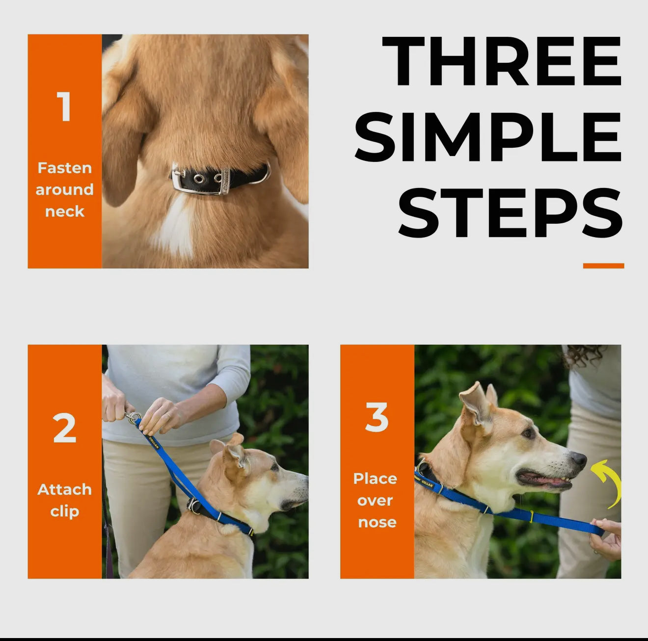 'steers' your dog's head. Can be slipped off when not needed to train walking on a regular collar and lead with no pulling.